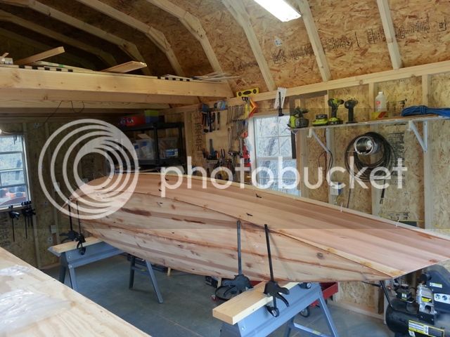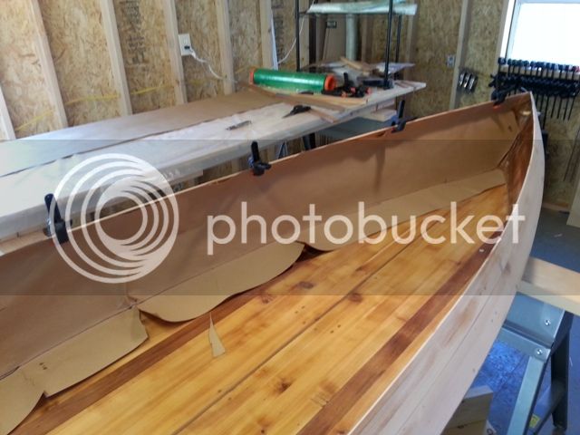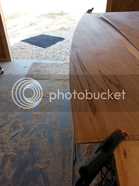 I started out by cutting my basic templates out of Luan. At least two of you had suggested using OSB or MDF templates if the router was to be used for final cut out of the strip panels. That’s good advice; my practice router cuts on Luan went real good until the bearing slipped over the 5 mm luan. I won’t try the router method on the cedar strip panels using the luan templates. I do think the router would work good with thicker templates, I used it some to cut out templates along the batten. I did discover that 7/16 OSB at Home Depot is NOT a full 4’ X 8’.